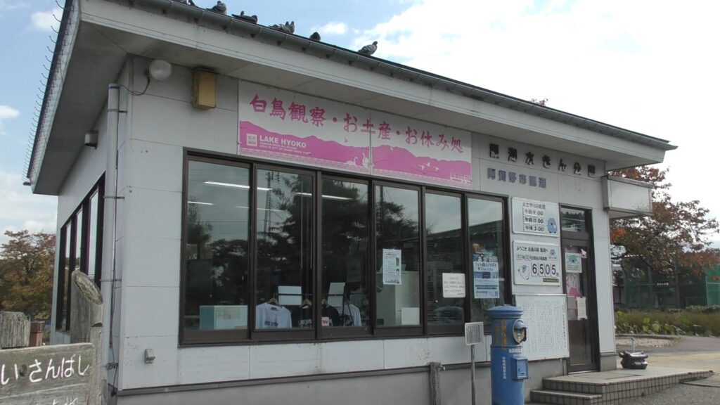 瓢湖水きん公園には観測舎もあり、休憩しながら窓越しに瓢湖を一望できるほか、カフェやスイーツも販売しています。