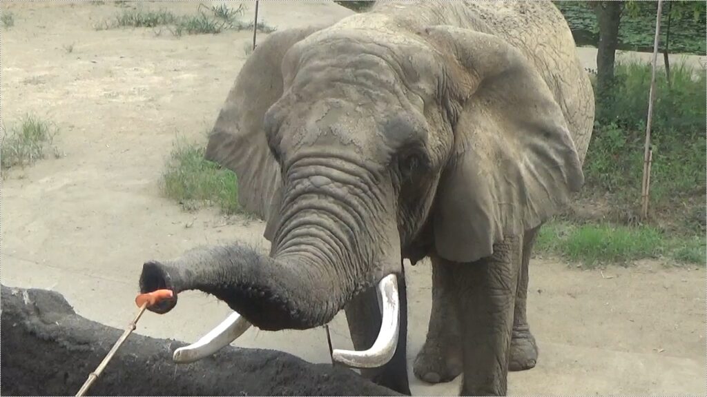 また、アフリカゾウのエサやりイベントでは間近で観察しながら、リンゴを上げることができます。