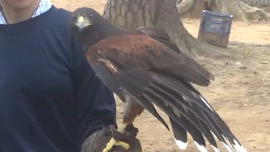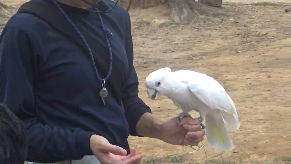 ヤギやヒツジなどのいる「ふれあいの丘」では、ルリコンゴウインコやタイハクオウム、ハリスホークによる「フリーフライト」が毎日実施されています。