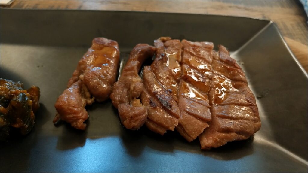 肉厚の牛タンは柔らかく十分な暑さもあり、付け合わせの南蛮味噌の胡瓜もごはんによく合いました。